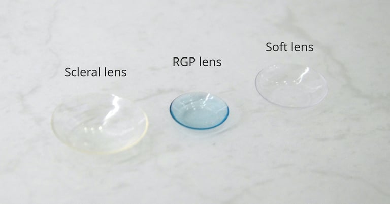 Specialty Lenses: Scleral Lenses If you suffer from conditions such as keratoconus, dry eye, or irregular corneas, scleral lenses might be the solution. These large-diameter lenses rest on the white part of your eye, providing comfort and improved vision by creating a smooth surface for light to enter. Our optometrists are skilled in fitting these advanced lenses for maximum comfort and performance.